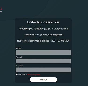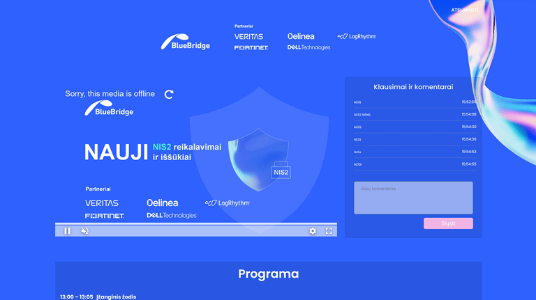 Transliacijos puslapis paruoštas pritaikius renginio vizualus. Prisijunkite su kodu - Portfolio2024