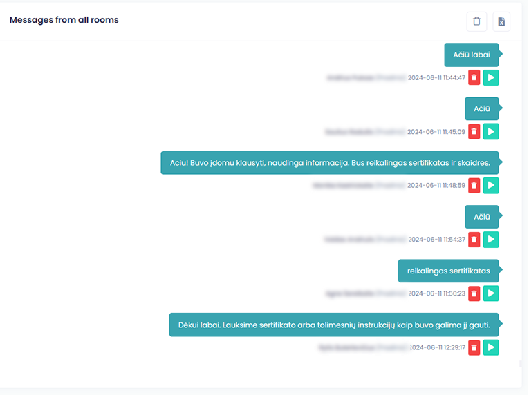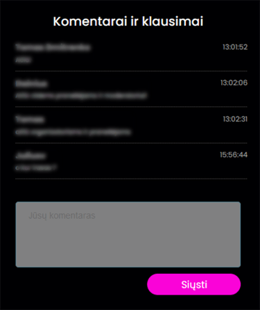 Galimybė stebėti ir moderuoti dalyvių žinutes