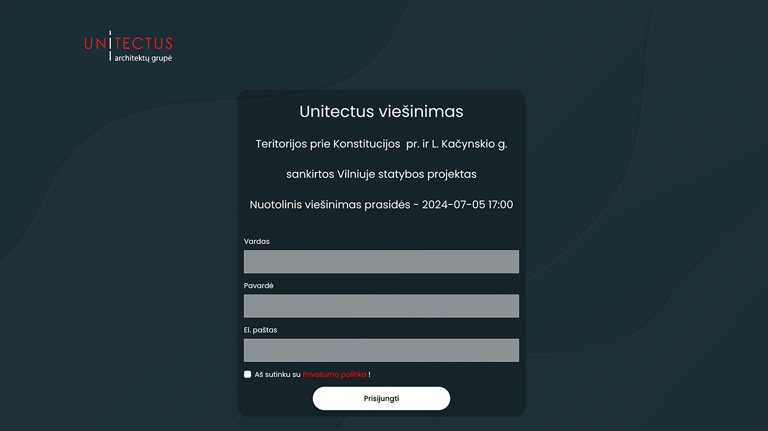 Puslapis savo registracijos paprastumą kompensuojantis elegantišku dizainu.